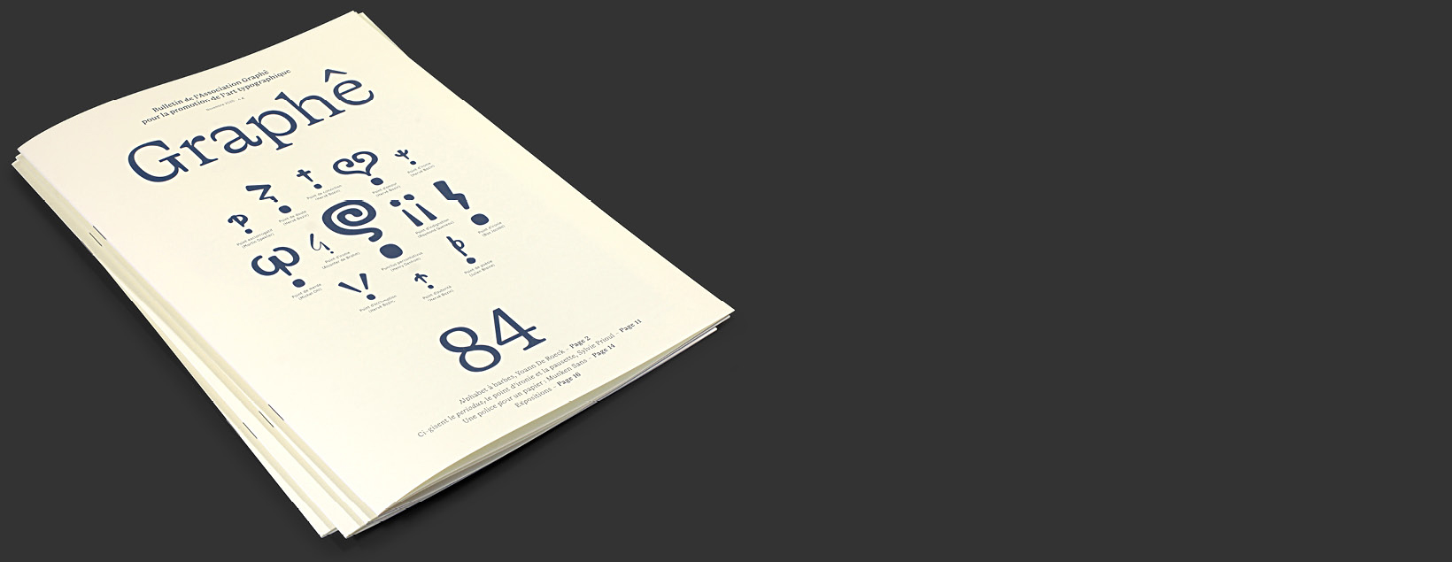 Contribution au numéro 84 de la revue Graphê, novembre 2020. Il s’agit de la traduction de l’article ‘Characters with beards’ paru initialement dans la revue anglaise Forum, éd. Letter Exchange, numéro 40, septembre 2020. Cet exemplaire est en vente sur le site de l’Association pour la promotion de l’art typographique Graphê.
