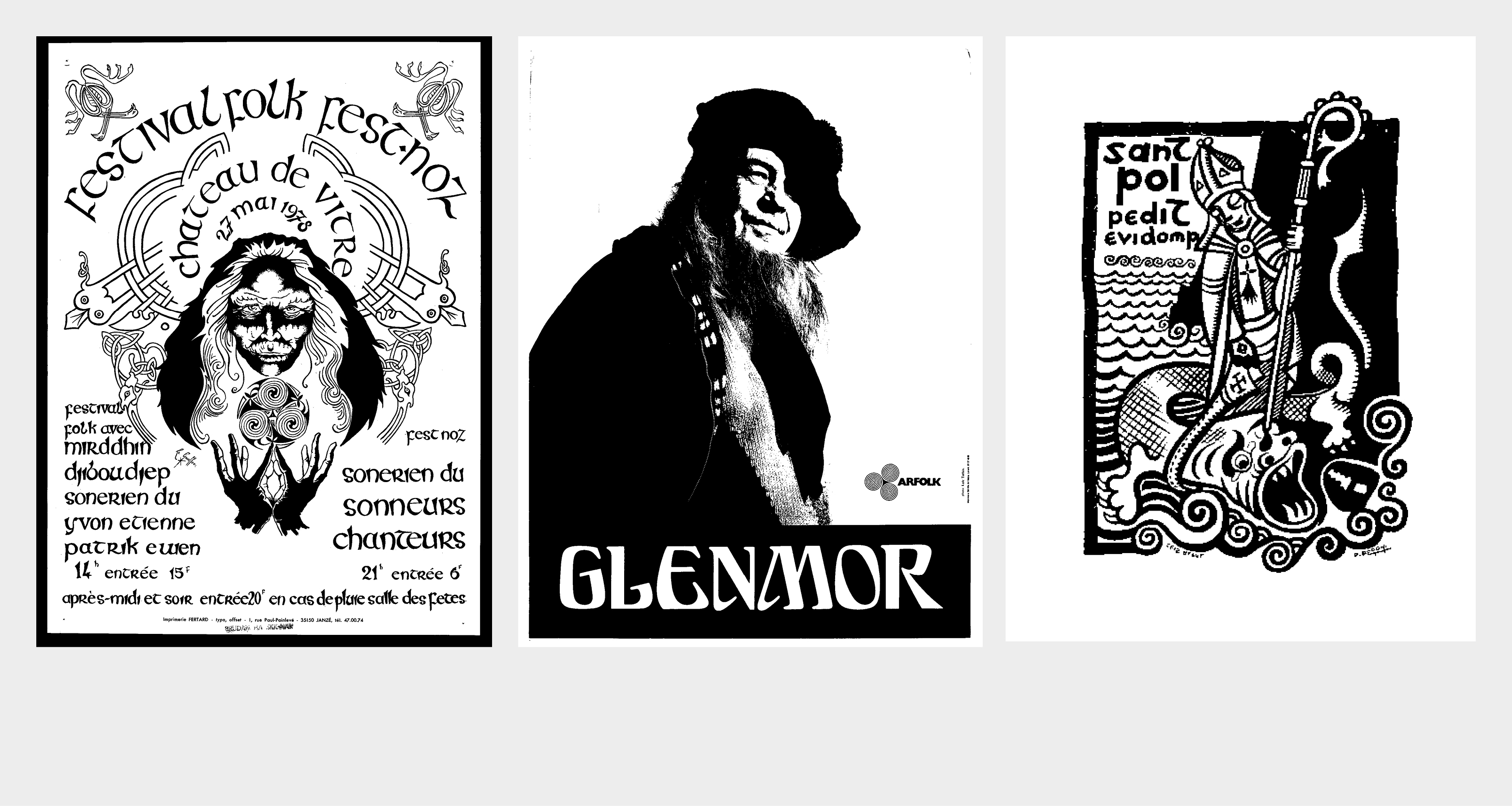 Le second revival, dans les années 1970, s’inscrit dans un contexte différent, celui du renouveau folk et des luttes sociales. La musique, le festival interceltique de Lorient et le renouveau du fest-noz participent à un sentiment d’appartenance revigoré. Ce mouvement s’accompagne d’un foisonnement graphique: affiches artisanales, typographies inspirées du celtisme, entrelacs, spirales, motifs irlandais. Ces formes, parfois stéréotypées, traduisent un désir sincère de réappropriation culturelle, mais révèlent aussi les limites d’un style identitaire figé dans l’ornementation.