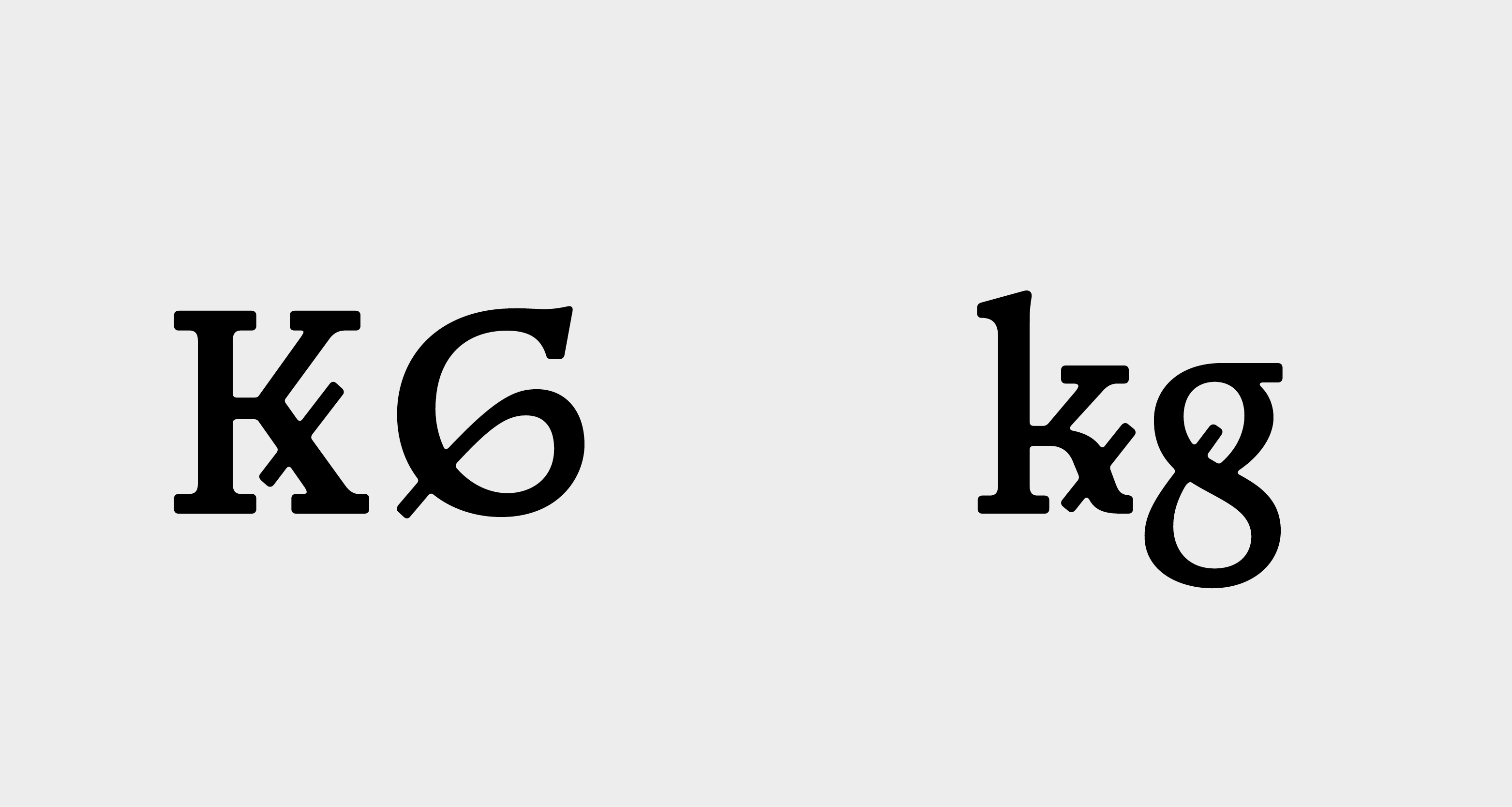 L’approche privilégie une expressivité contenue: certains glyphes, comme le G, le g ou le Q, deviennent des espaces d’expérimentation. Ce travail d’équilibre s’observe aussi dans la gestion du contraste, des arrondis et des proportions. Un faible contraste, des formes robustes et chaleureuses cherchent à concilier solidité et convivialité. Chaque choix découle d’un compromis entre fidélité historique, cohérence structurelle et confort de lecture, évitant à la fois l’effet décoratif et la neutralité vide.