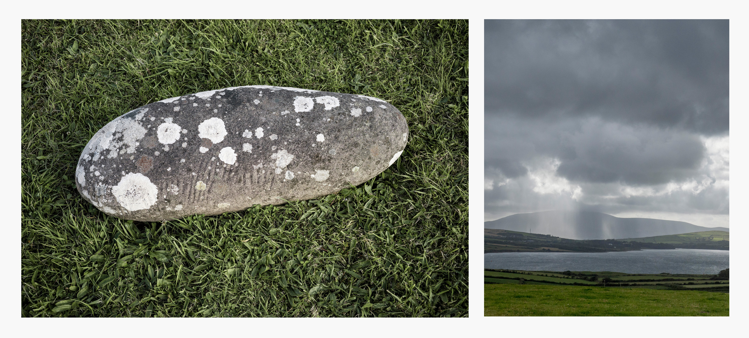 2. Nous remercions ici la famille Fitzgerald de Castlegregory et en particulier Franck Fitz qui nous a guidés la première fois dans ce champ pour nous révéler avec ferveur et émerveillement l’emplacement de cette pierre remarquable.