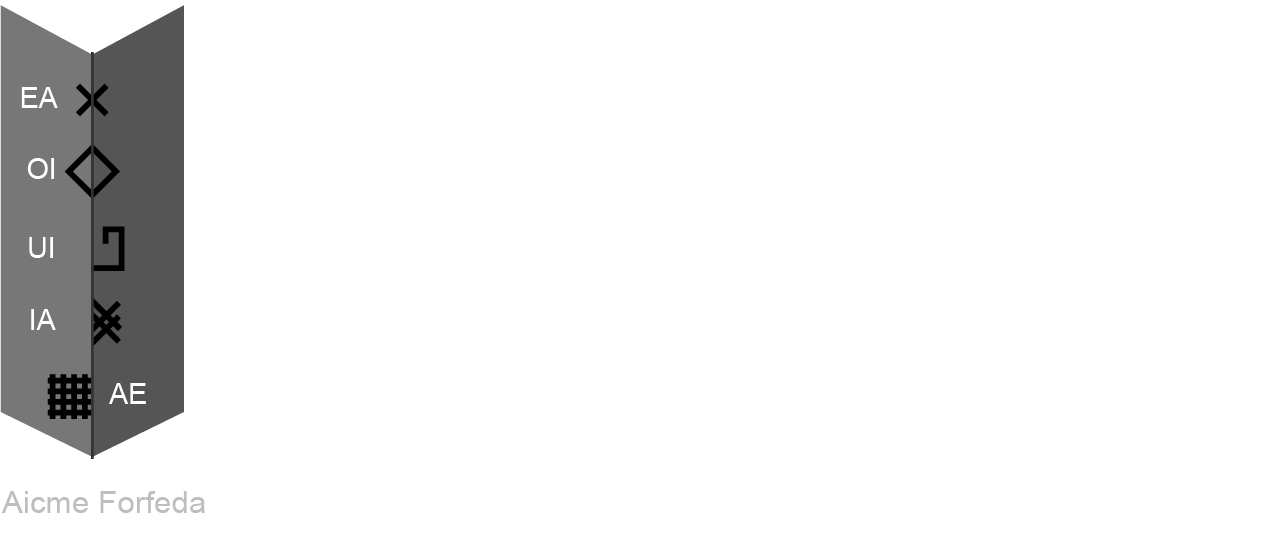 Un cinquième groupe de cinq lettres supplémentaires a été ajouté dans certains manuscrits, à une époque plus tardive, et sont appelées forfeda. Elles correspondent aux sons ou diphtongues d’origines étrangères.