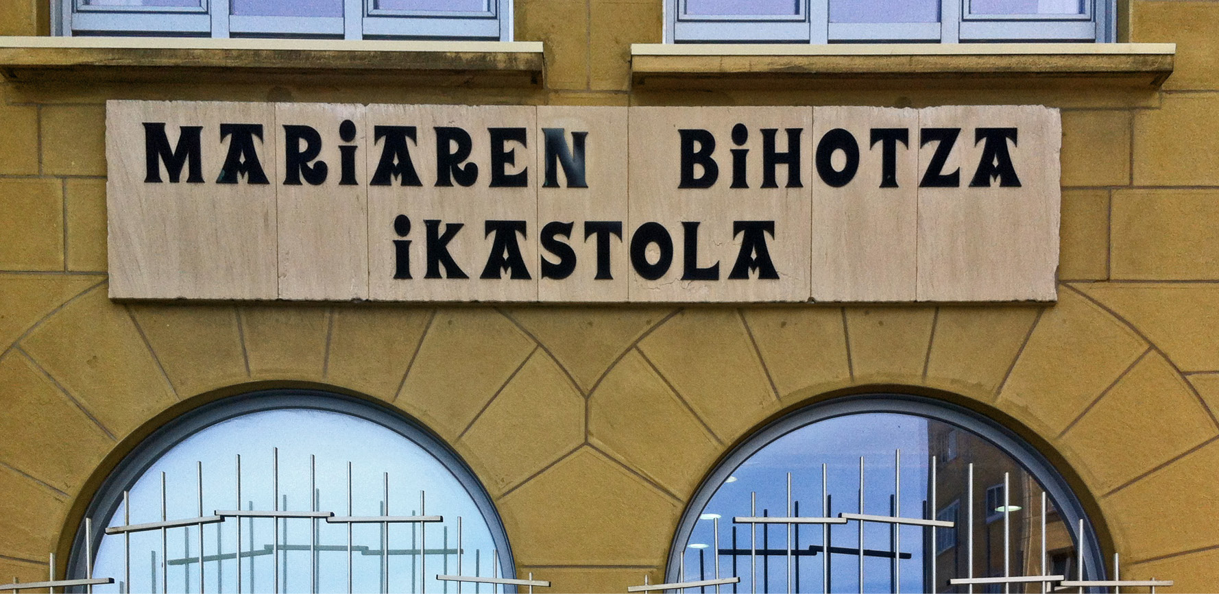 Il s’agit du basque, une langue pré-indo-européenne, dont l’origine reste une question ouverte, et qui a survécu jusqu’à aujourd’hui, malgré la pression d’autres langues dominantes voisines, grâce au travail et à la persévérance de mouvements sociaux et politiques liés à la défense de la culture basque et de sa langue. Lorsque j’ai dit plus haut que le choix de ce style de lettres répond dans la plupart des cas à l’intention de projeter un caractère basque, je disais aussi, implicitement, que la plupart du temps ce choix est lié à la langue dans laquelle les messages doivent être écrits. De cette manière, le lieu, sa langue et sa culture, sont reliés par le biais de ce véhicule aux multiples facettes qu’est la typographie.