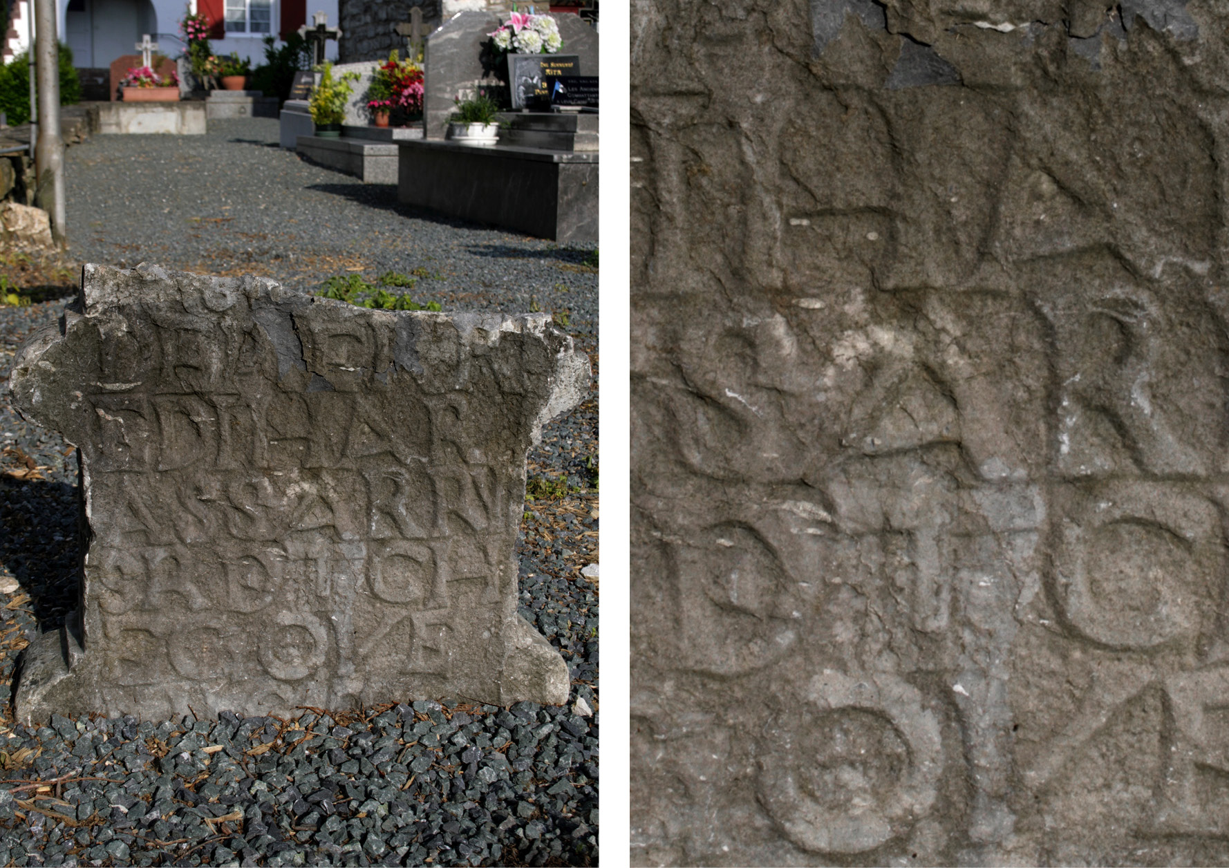 La recherche de l’origine de ce style unique de lettres nous conduit à l’épigraphie, l’étude de l’enregistrement du langage sur son support le plus durable : la pierre. Les tombes qui gardent la mémoire de nos ancêtres sont faites de pierre.
