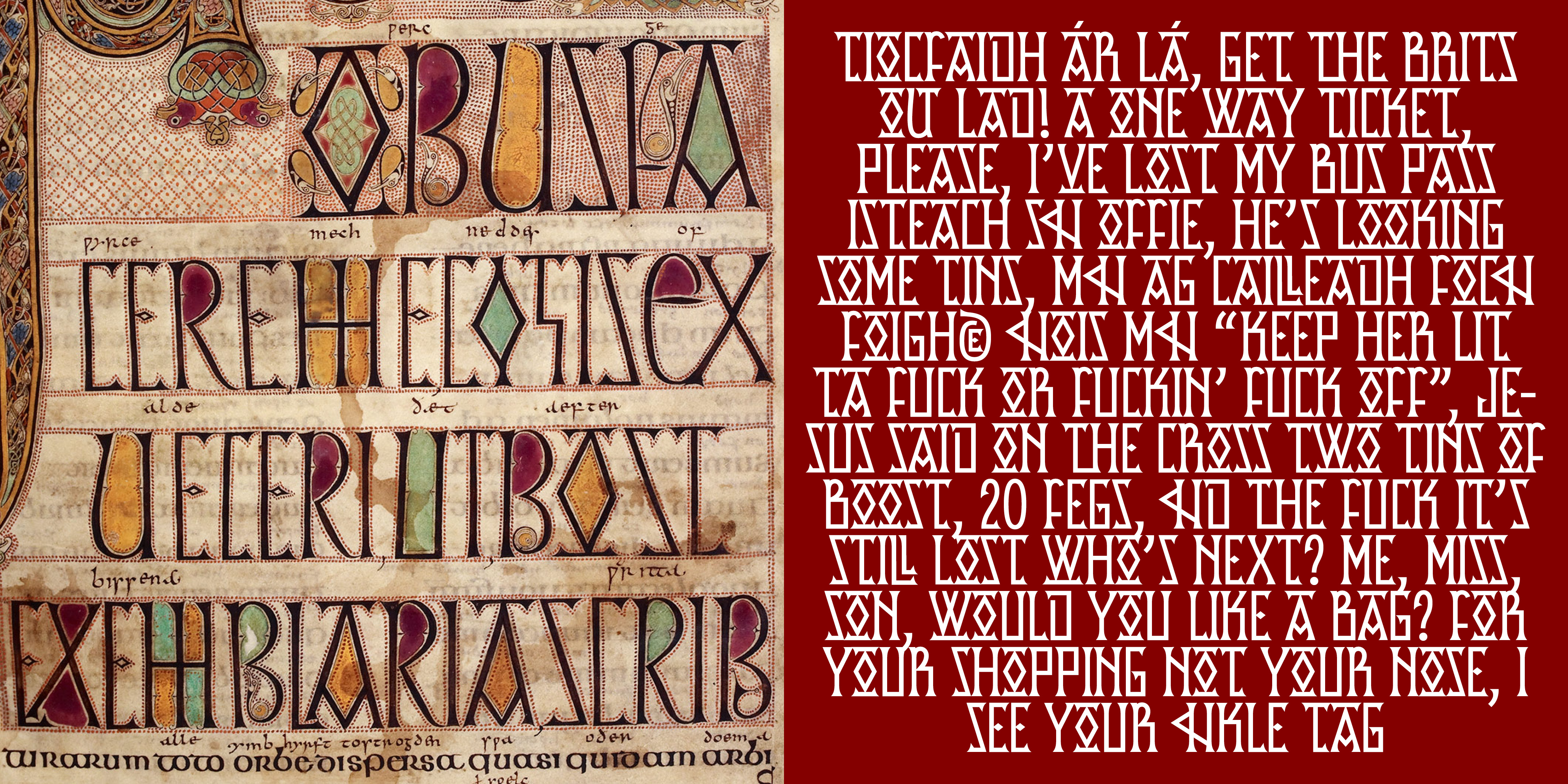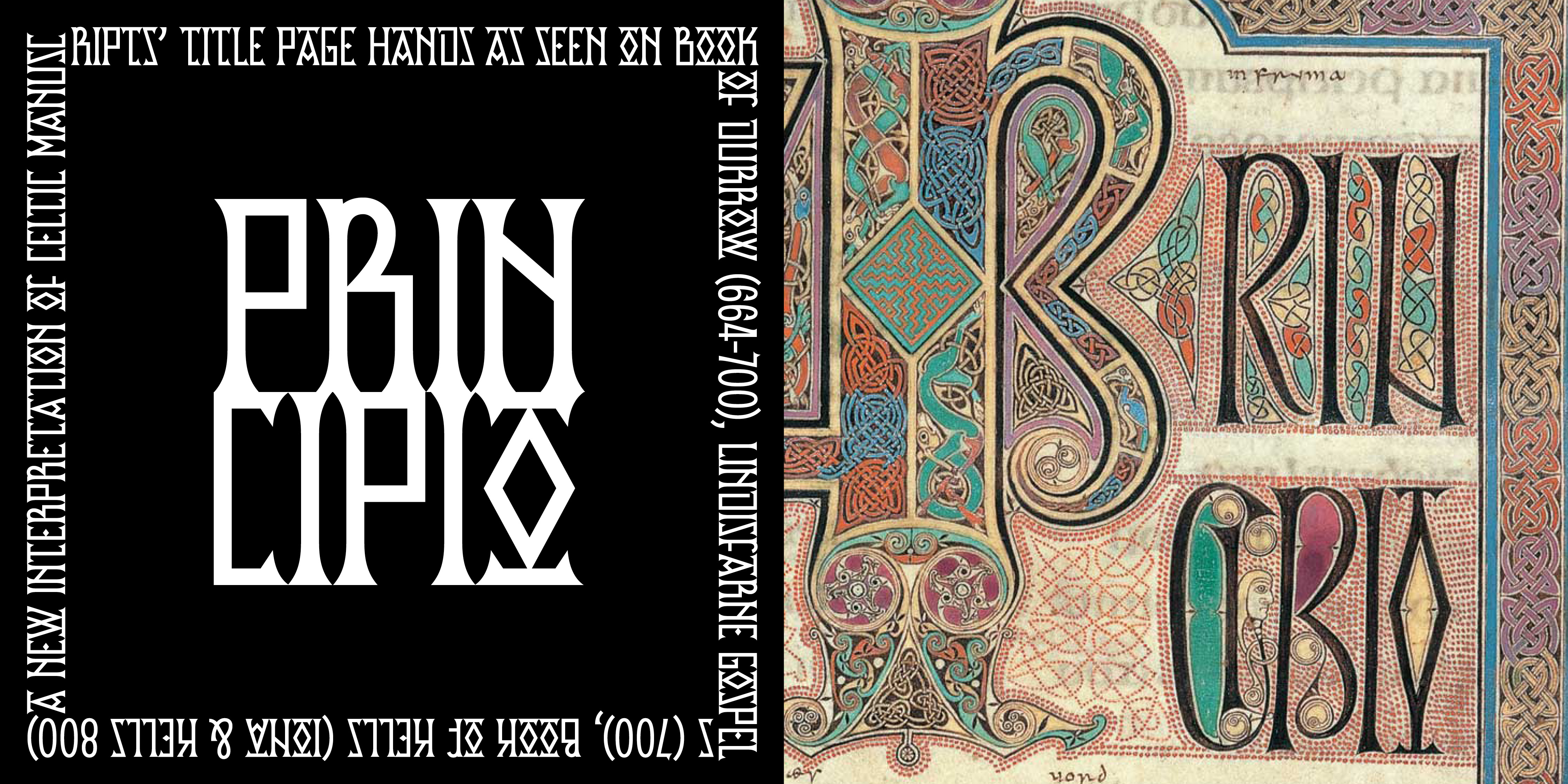 Ar Principio zo un displegadur lizherennoù lizherennoù frank a weler war pajennoù titl dornskridoù sklêrijennet iwerzhonat ha saoznek adalek ar VIIvet kantved. Ar c'hompozadurioù tipografek-se gant arouezennoù neizhiet ha kinklet a zo pinvidik-kenañ war an anal. E-touez an dornskridoù gwellañ a chom bev emañ Levr Durrow (664–700), Avieloù Lindisfarne (700), ha Levr Kells (Iona ha Kells, 800). Klask a ra ar Principio tapout spered an arz kozh eus ar Grennamzer en un doare jedoniel dereat evit an implij a-vremañ. Ar lizherennoù bras, lizherennoù bihan ha lizherennoù bihan a c'hell bezañ implijet a-du pe a-gevret evit krouiñ ur bern tonioù ha stiloù. En tipografiezh e kaver ivez un toullad bras a liammoù kemplezh hag a stummoù all, ar pezh a ginnig ur bern stummoù da implijout.